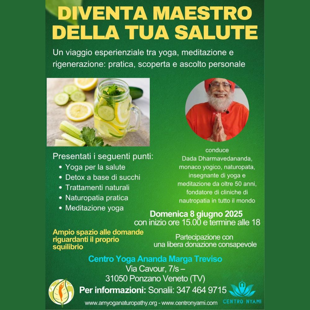 DIVENTA MAESTRO DELLA TUA SALUTE a cura del monaco indiano Dada Dharmavedananda Domenica 8 Giugno 2025 dalle 15:30 alle 18:00 Un’occasione speciale da non perdere! Ti invitiamo con grande piacere a partecipare all’unico incontro che si terrà *domenica 8 giugno con lo yogi e naturopata Dada Dharmavedananda, da oltre