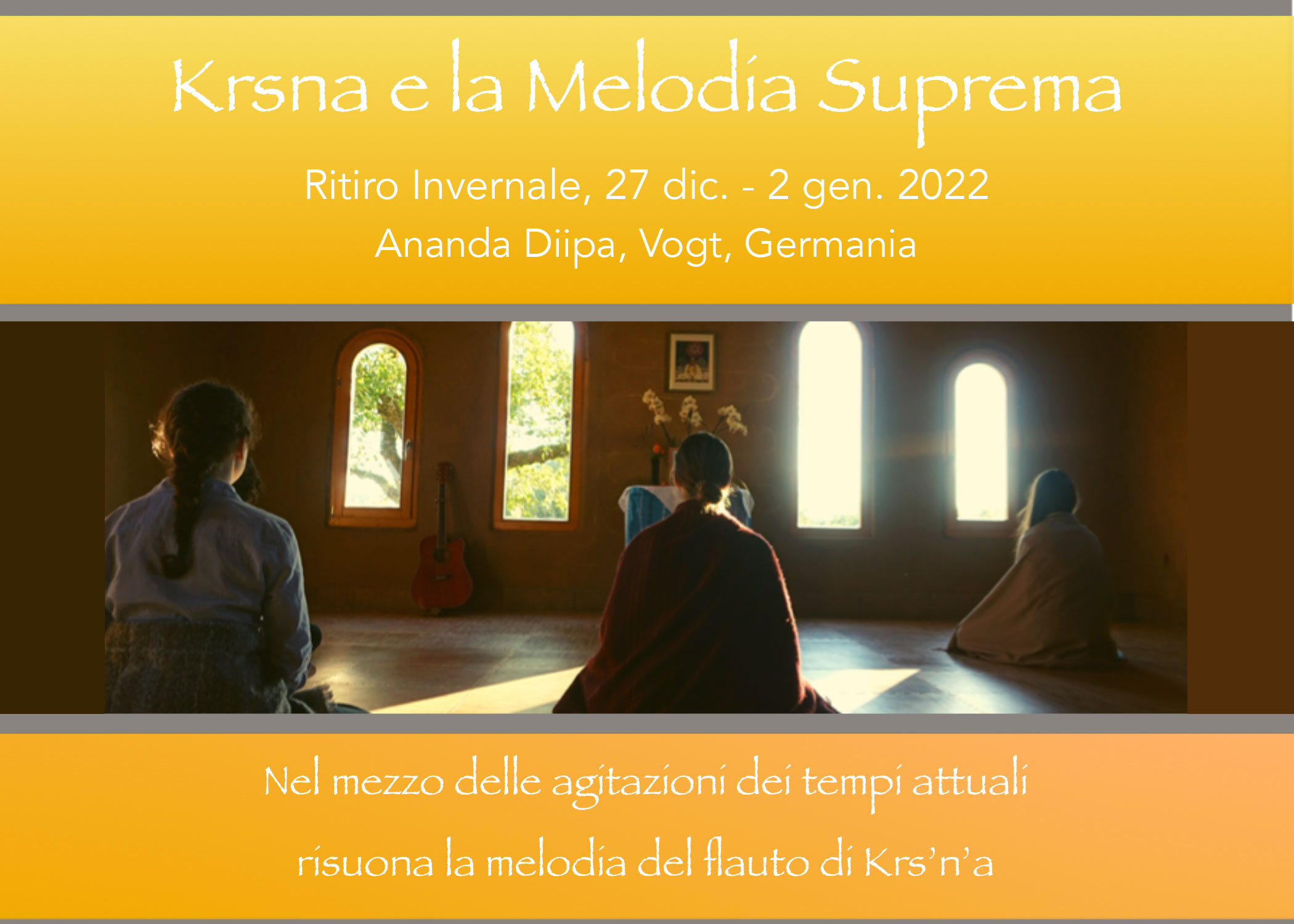 Il programma verrà condotto in italiano da Didi Ananda Shubhashisa. Parteciperanno in parte anche Dada Madhuvidyananda e Dada Dharmavratananda.